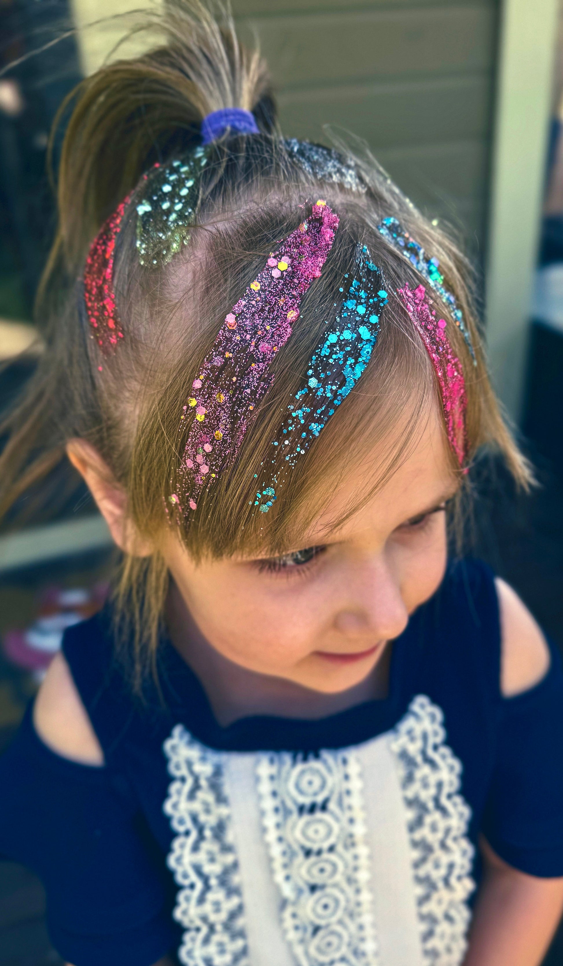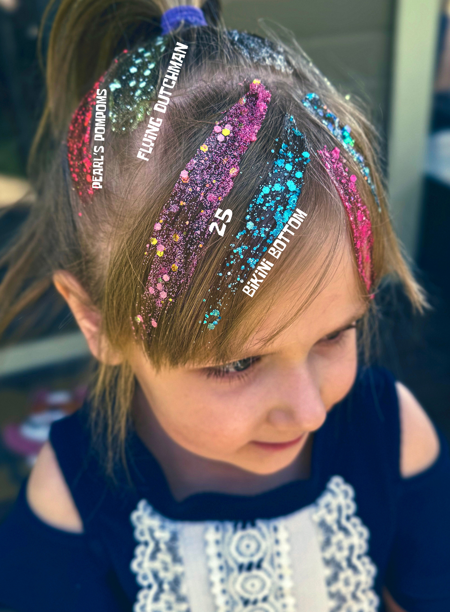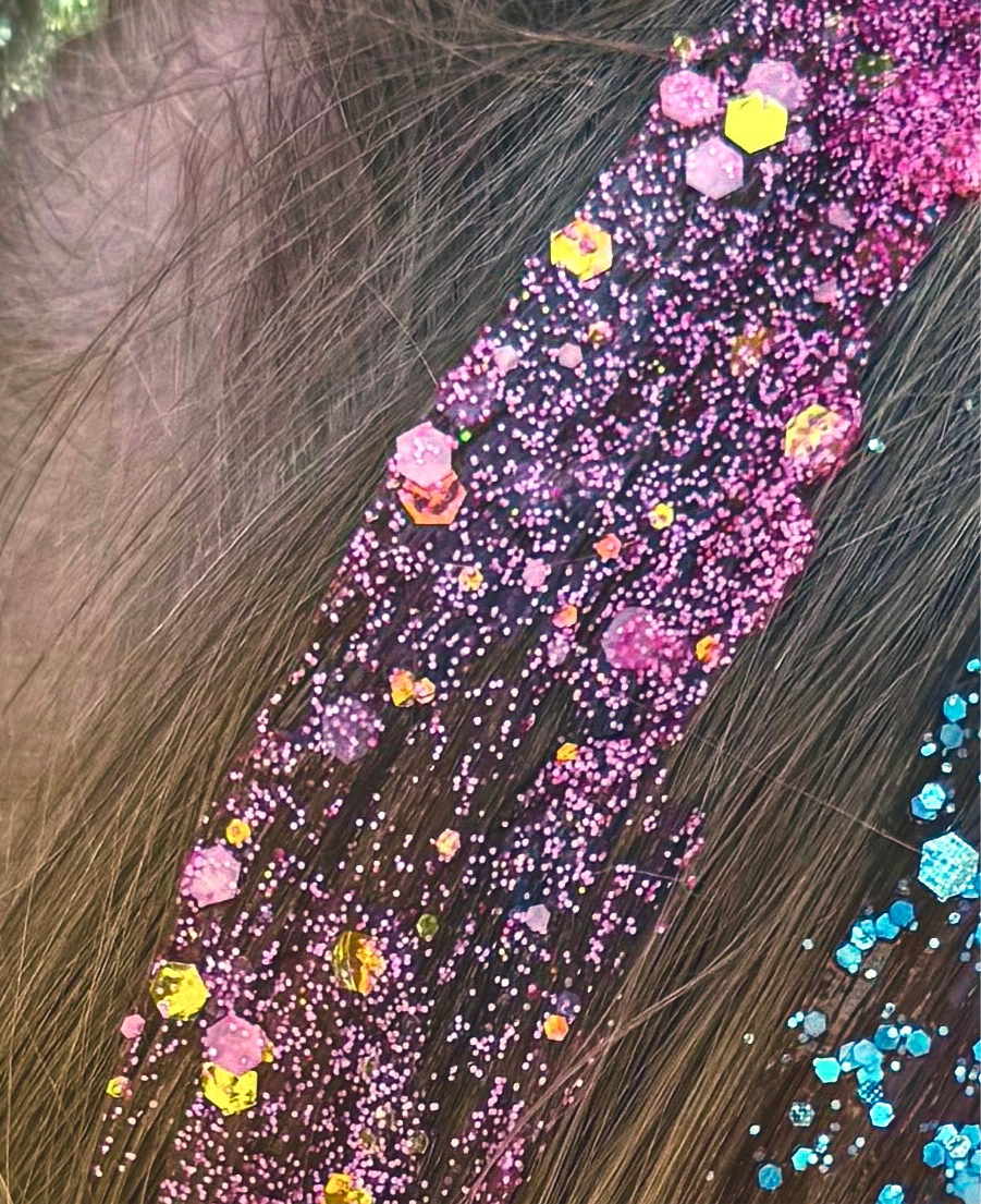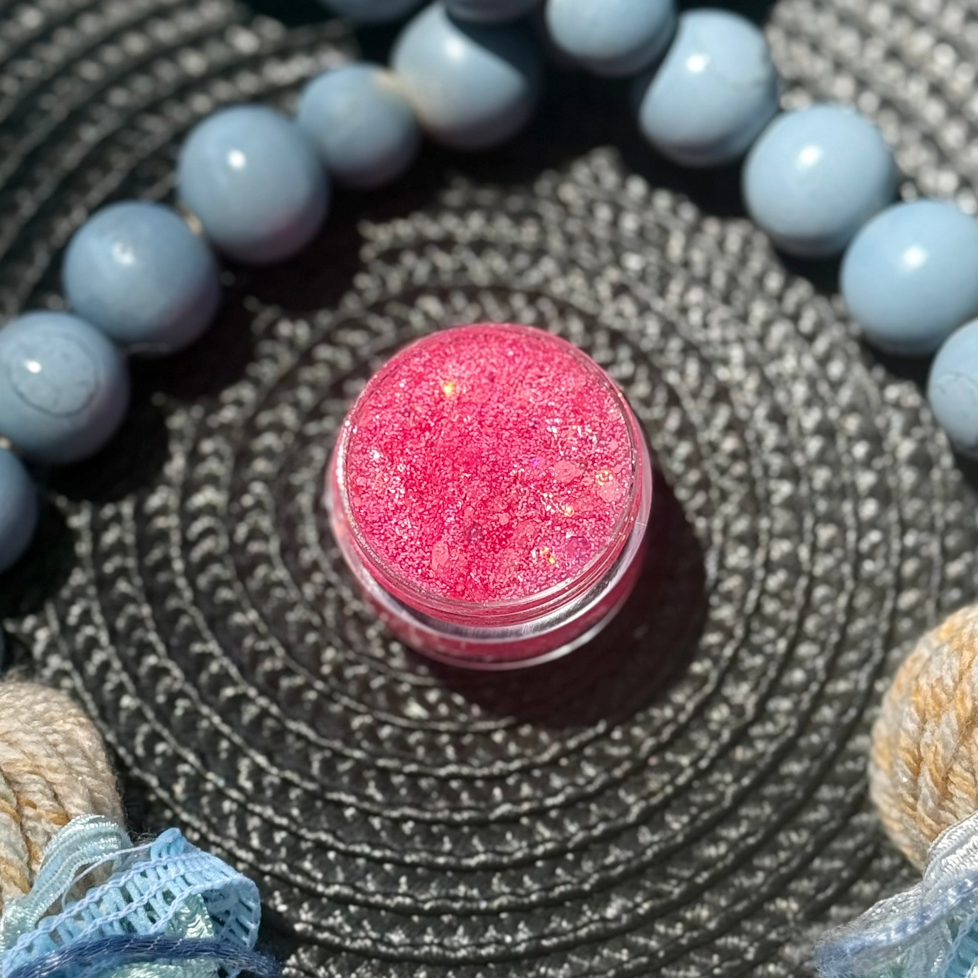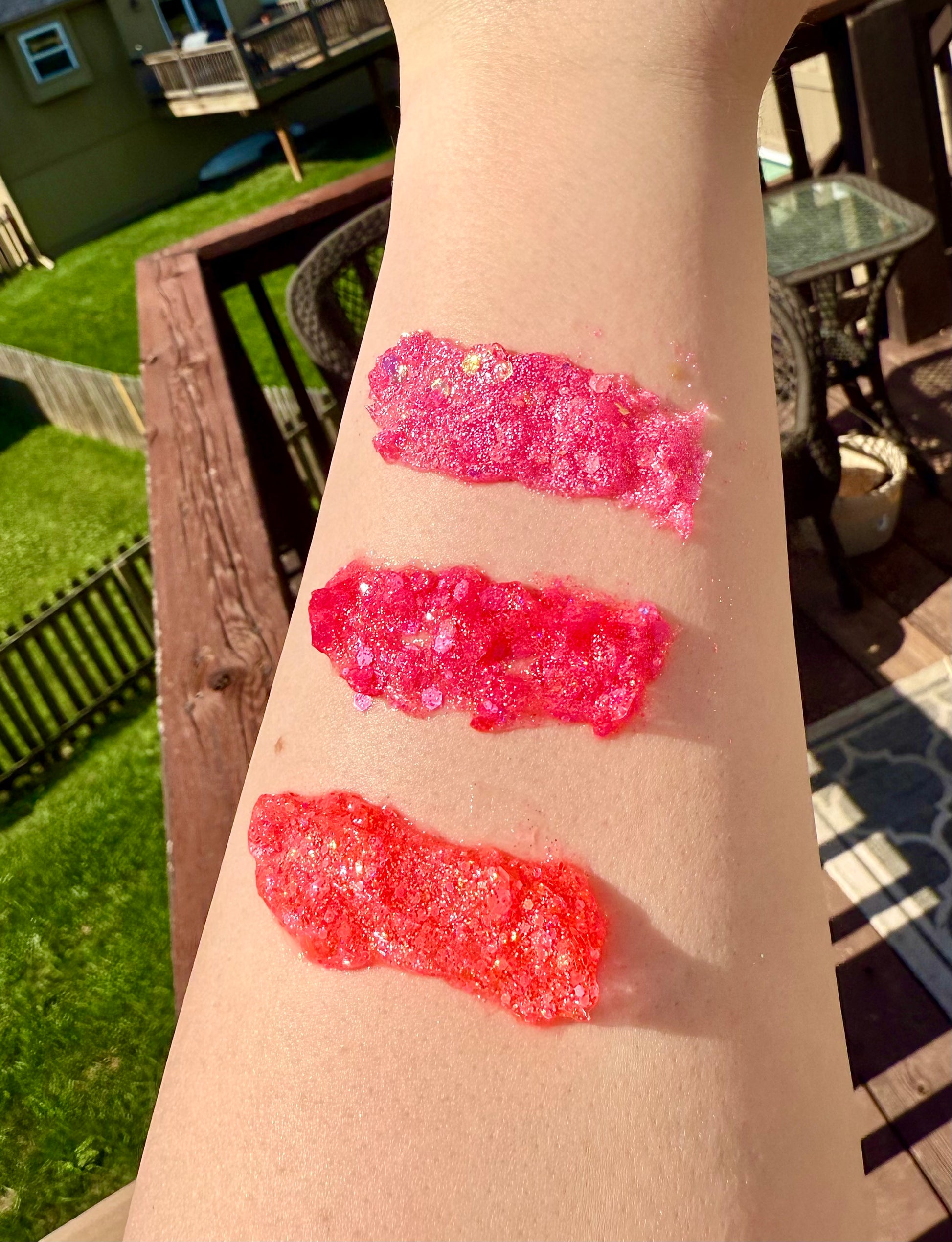 Hot pink fine glitter mixed with iridescent orange, coral, and peach.