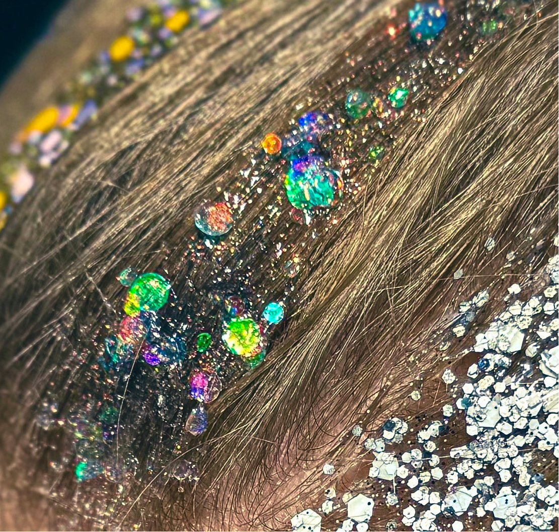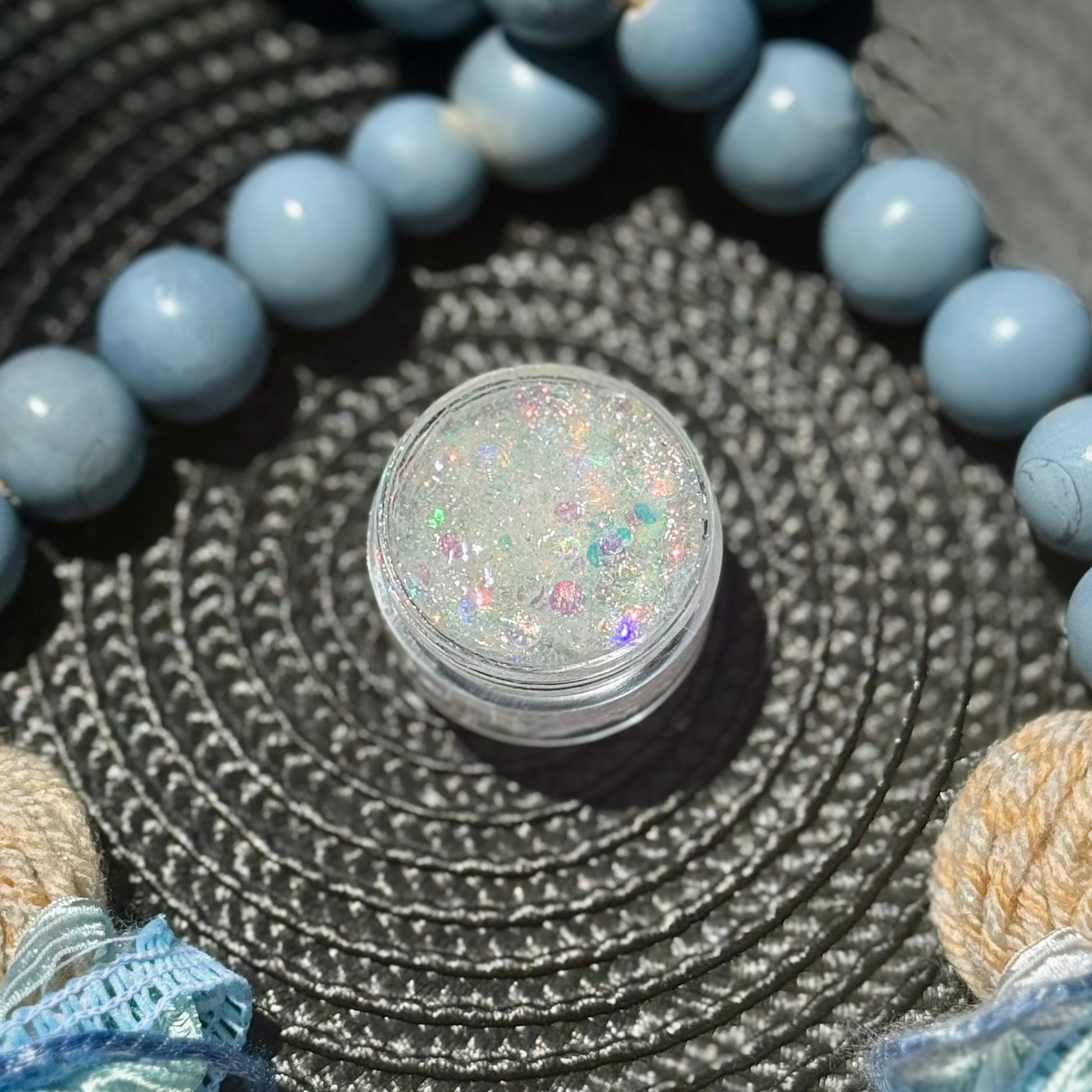 A gorgeous mix of shimmery, iridescent bubbles with a glittery white base.
