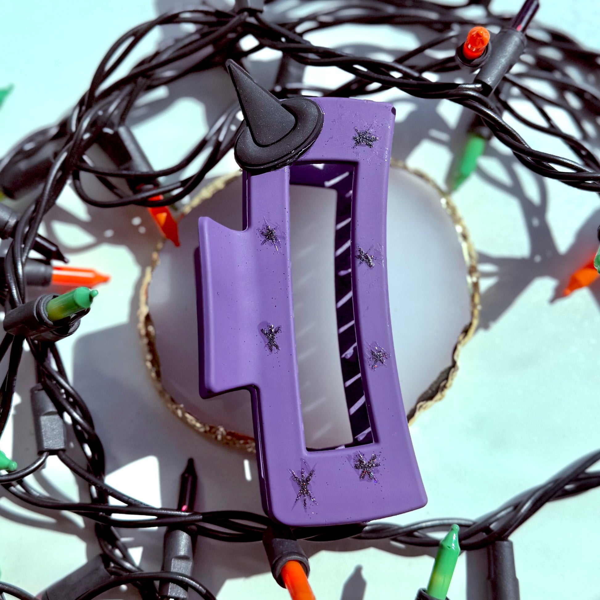 Get in the spooky spirit with the Feelin' Witchy Claw Clip. This hair accessory features a charming witch hat charm and subtle stars, perfect for adding a touch of witchy vibes to any hairstyle. Bring out your inner witch and feel enchanted all day long.