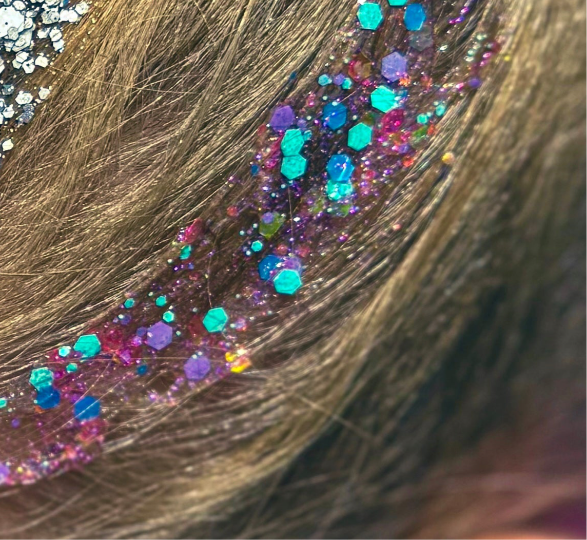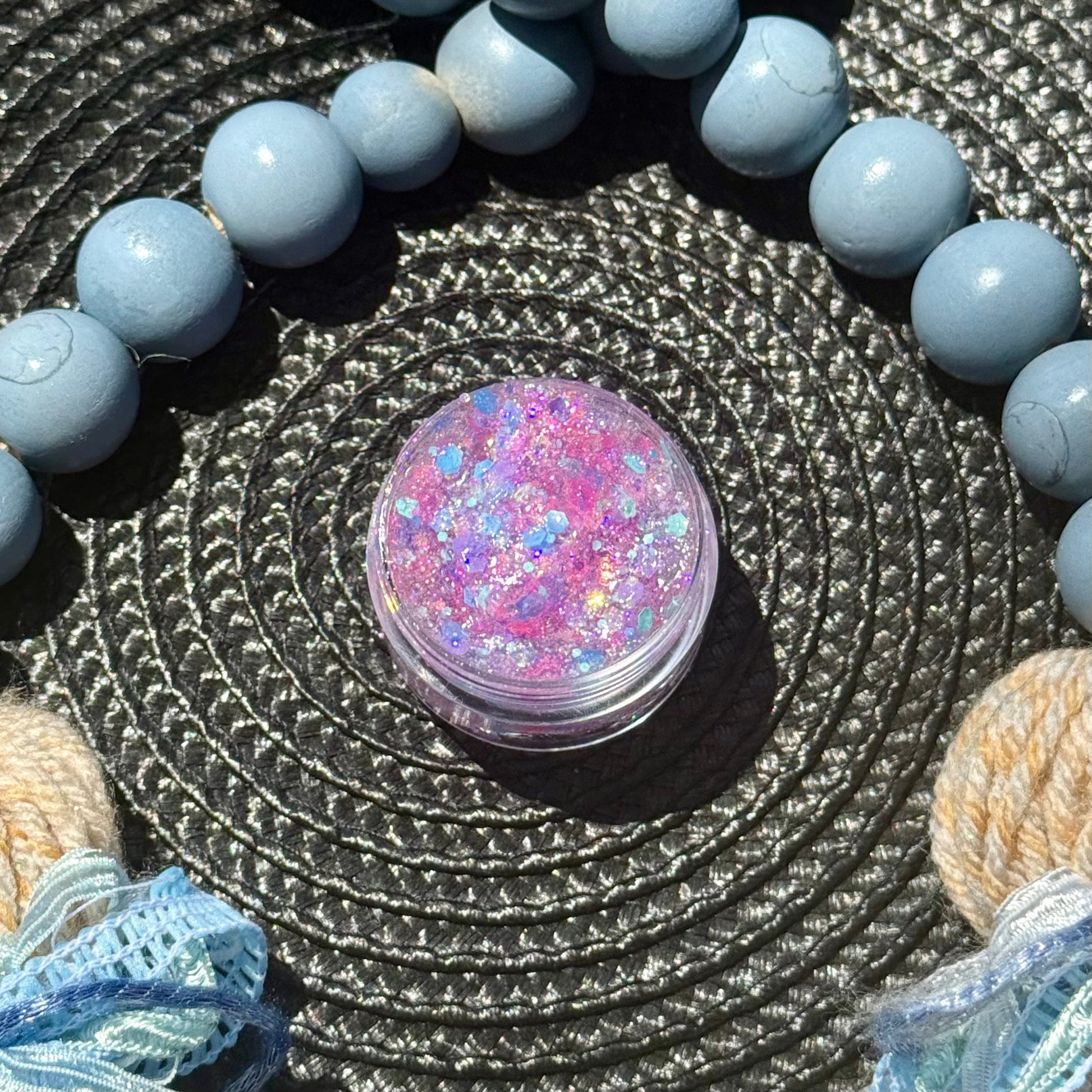 An adorably moody mix of violet, teal, coral iridescent, pink, and blue.