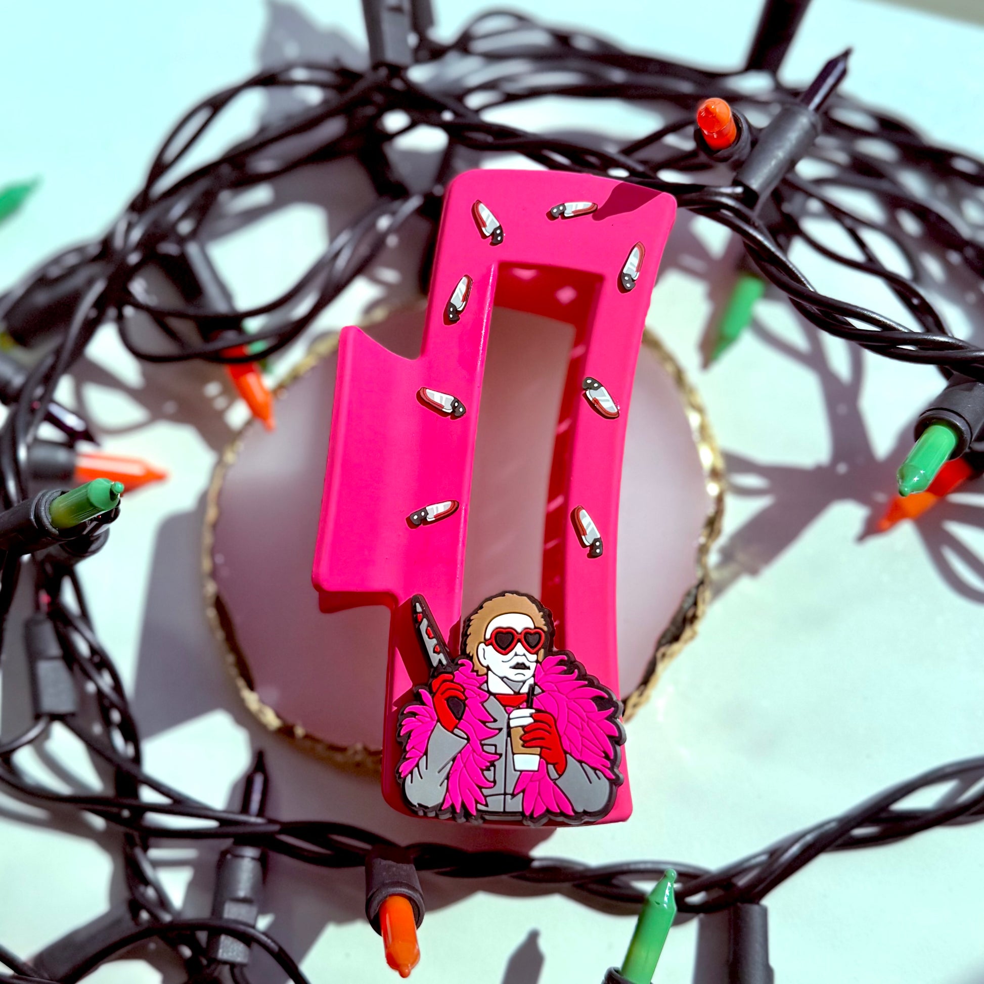 Get ready to slash through the night with the Michael Boa Claw Clip. This slasher-inspired accessory combines Michael's iconic look with a luxurious feather boa for the ultimate Halloween look. Complete your costume and make a statement with this unique clip.